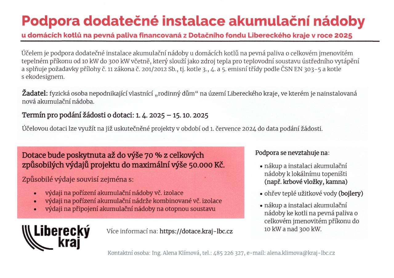 Podpora dodatečné instalace akumulační nádoby u domácích kotlů na pevná paliva pro rok 2025.