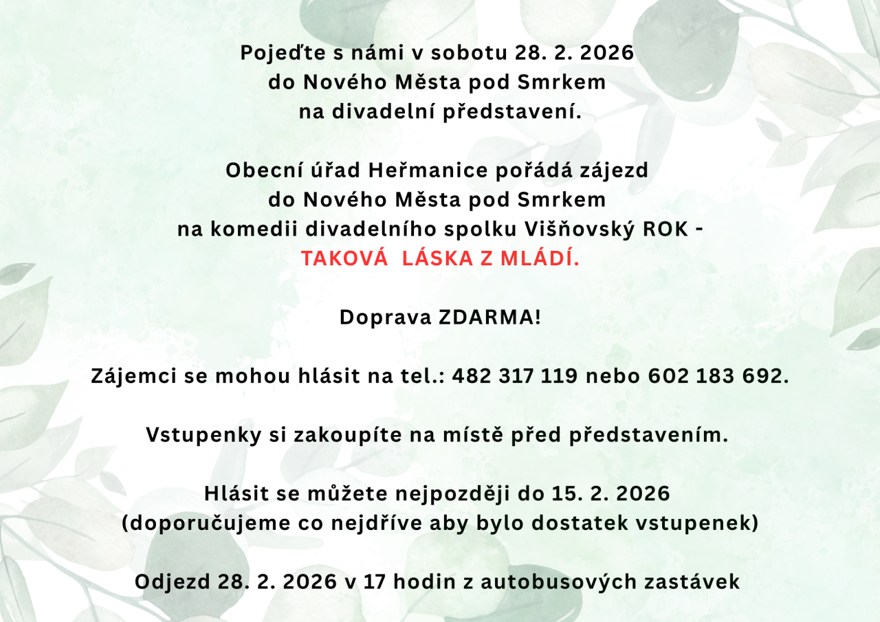 Zájemci se mohou hlásit na tel.: 482 317 119 nebo 602 183 692 nejpozději do 15. 2. 2026.
